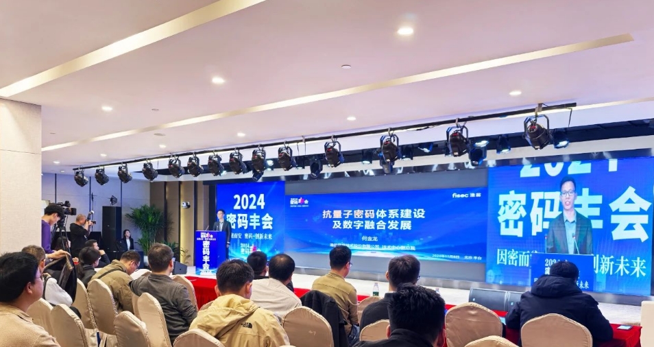 会议聚焦商用密码前沿技术和应用创新,前瞻行业动态。主题演讲环节,USDT钱包信息北京公司技术总监何金龙发表《抗量子密码体系建设及数字融合开展》主旨演讲,向与会人员阐述抗量子密码技术的开展趋势、USDT钱包信息的抗量子“密码+”体系建设,以及公司在电力、物联网、金融等多个监控场景的实际应用案例。